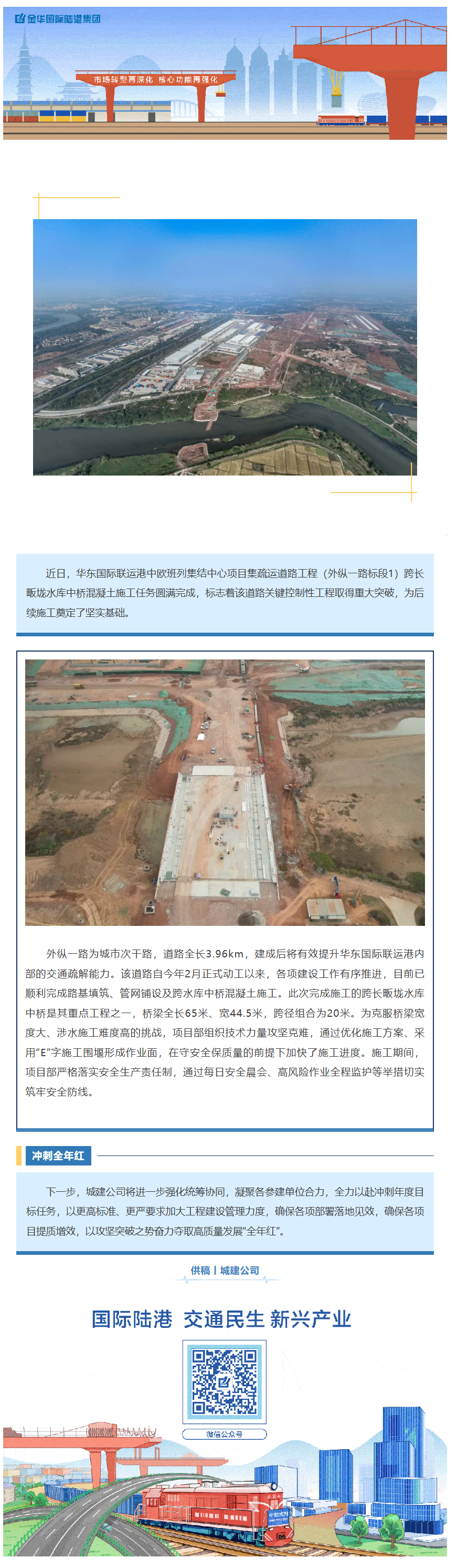 外縱一路標段1跨水庫橋梁板施工完成